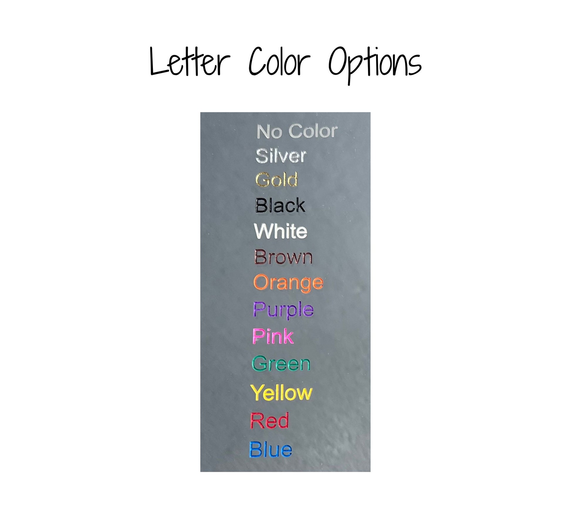 • Custom text available in a variety of vibrant vinyl colors including gold, black, pink, blue, and purple and more