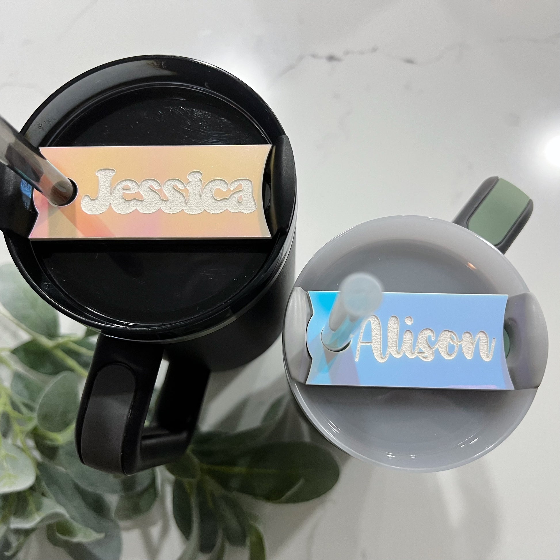 This gorgeous iridescent tag is the perfect accessory to showcase your unique style while keeping your tumbler safe from mix-ups. This tumbler name plate is personalized with your name engraved into the Iridescent color changing tag. It slides over your straw for easy installation and removal for cleaning.
