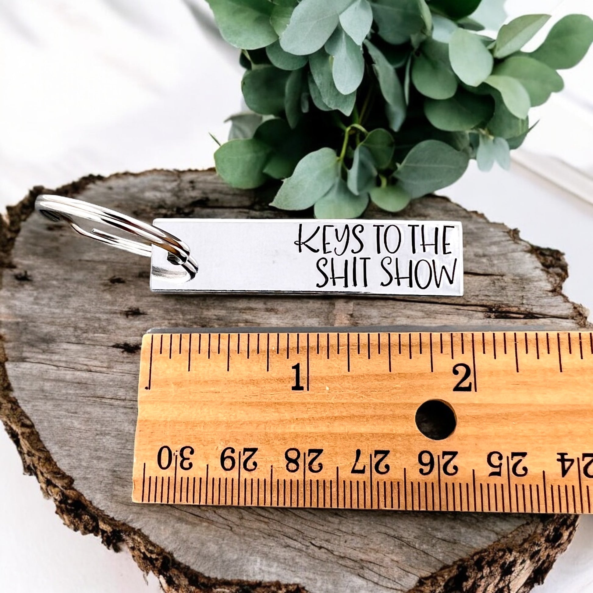 Add a bit of humor to your keys with this hand stamped keychain featuring the phrase "Welcome to the Shit Show." This metal keychain makes a perfect conversation starter and a fun way to express your unique sense of humor. Whether you’re gifting it to a friend, keeping it for yourself, or adding a bit of edge to your accessories, this quirky keychain is a reminder that sometimes, life is a bit of a mess — and that’s okay!oncern.