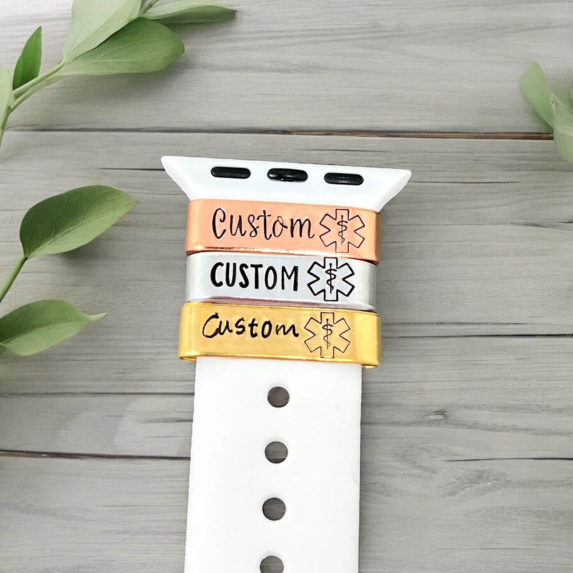 These watch band charms feature your personalized chronic illness. They slide right onto a watch band and are readily available in case of an emergency.