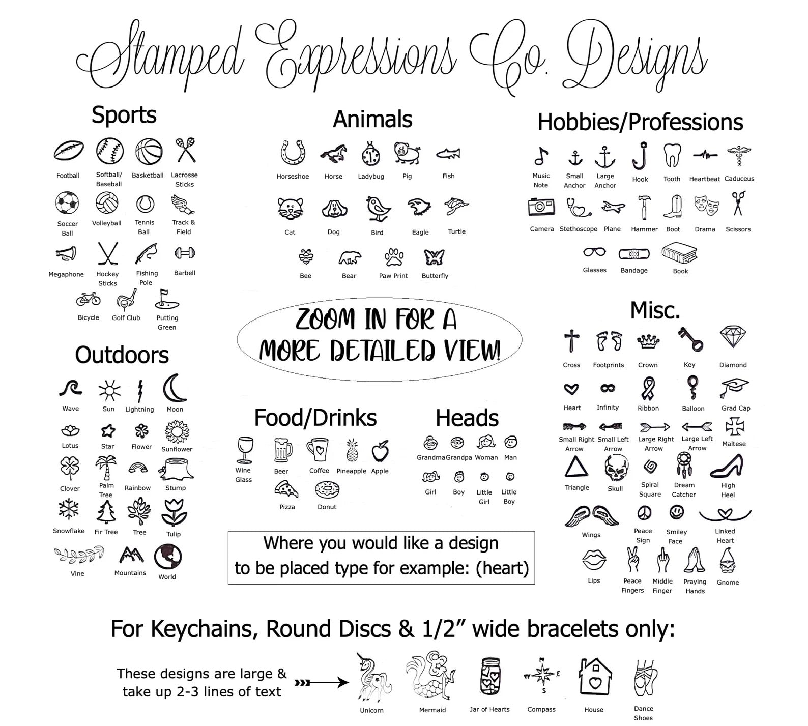 •Approx. character limits depending on the size of any designs that may be chosen, all available designs are shown in the images: