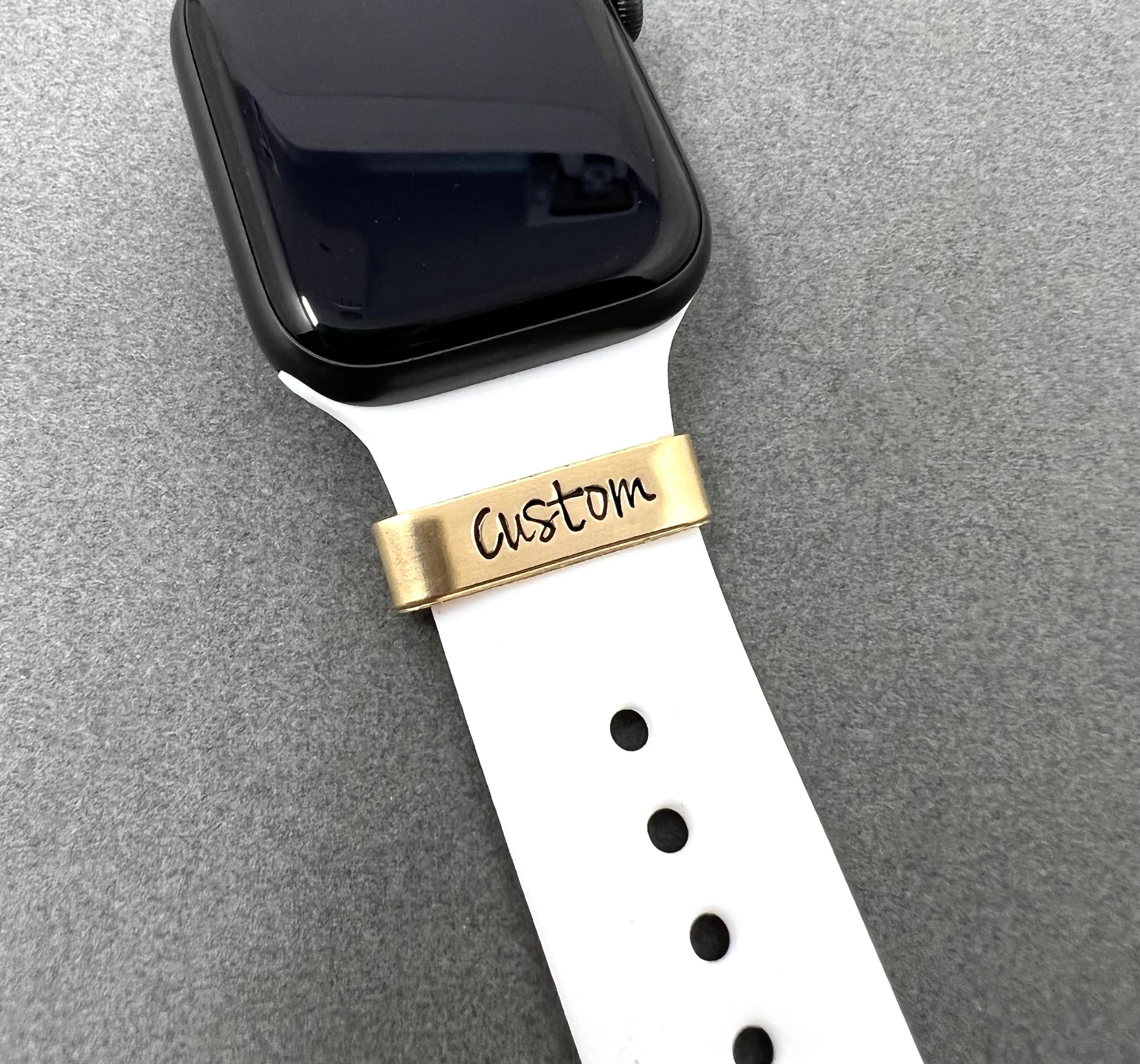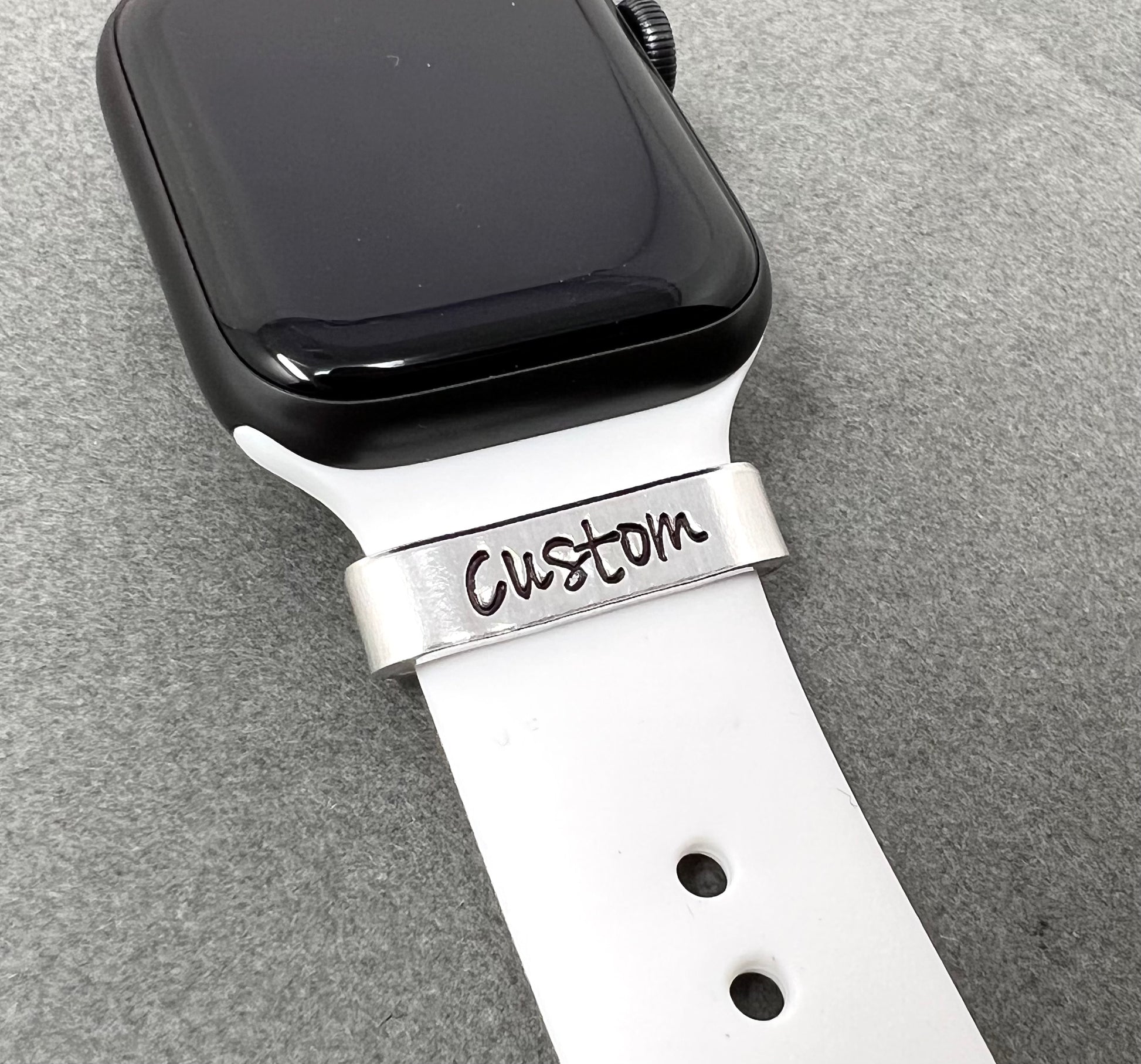 This watch charm slides right onto your watch band to add some personalization and fun to your watch! They can be personalized with a name, initials, a date and any of our available images shown in the pictures. Have some fun designing it however you would like. They make perfect and unique gifts too!