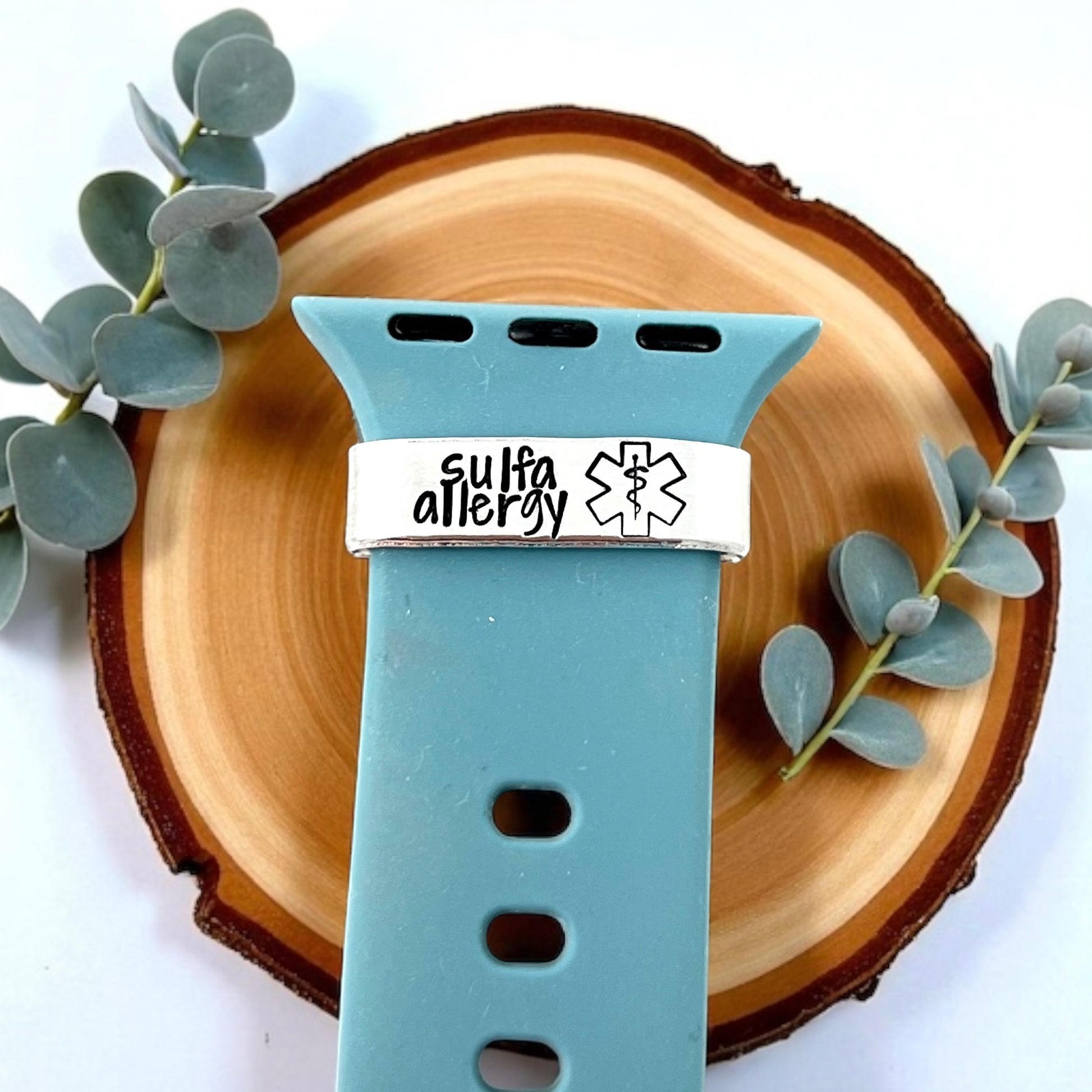 Prioritize safety without compromising style. This sulfa allergy medical ID slide is designed to easily slip onto your smartwatch band, offering a subtle yet critical medical alert in case of emergency. Featuring hand stamped letters with the words “sulfa allergy” and a medical symbol, it ensures your condition is clearly visible when it matters most.