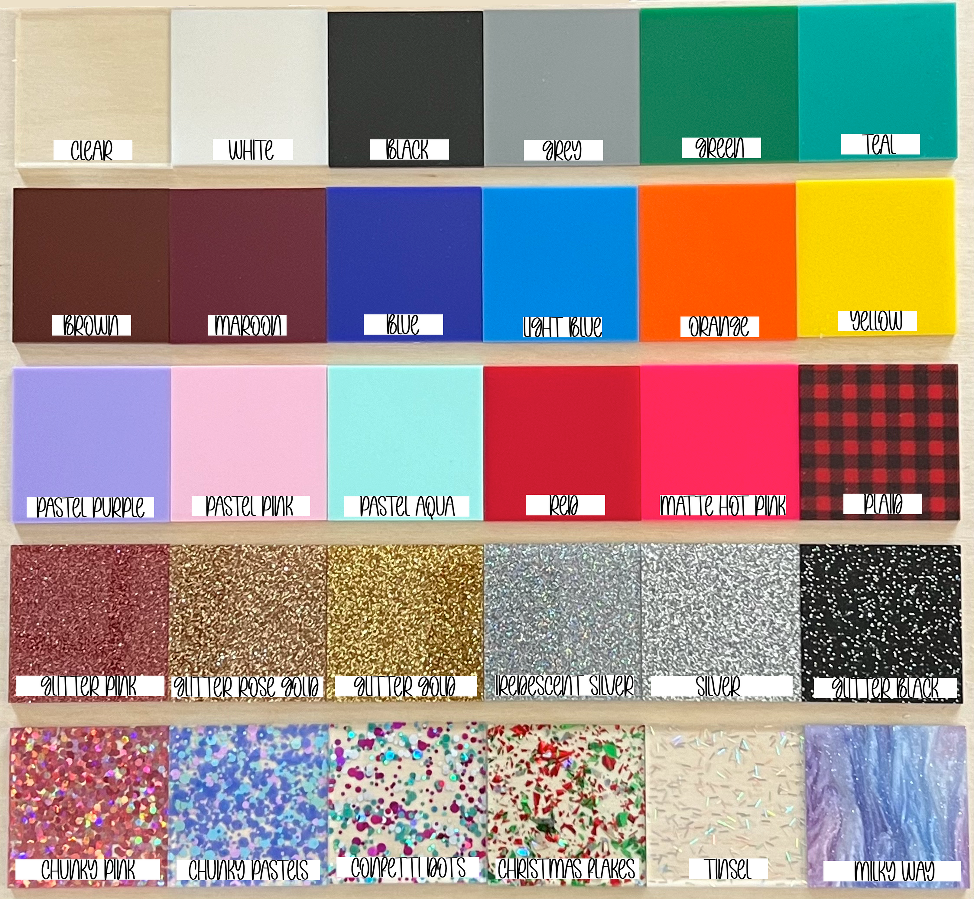 • They are laser cut, double layered acrylic and wood for a 3D look.
