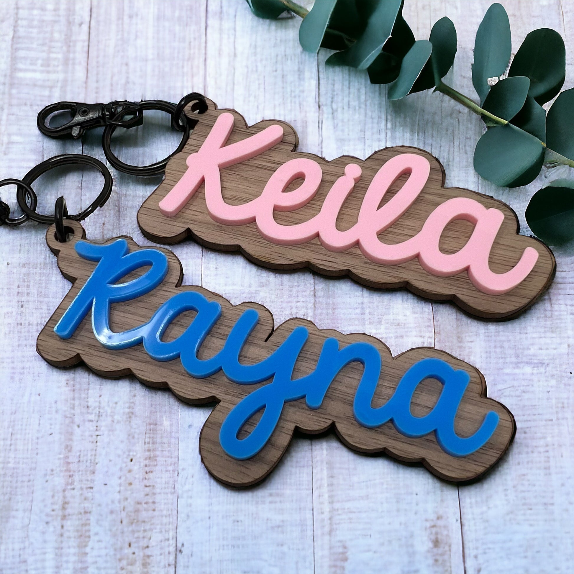 This tag is the perfect accessory to keep your belongings easily identifiable. It can be clipped onto backpacks, diaper bags, gym bags, purses, keys and more. Customizable with many colors, woods and hardware.